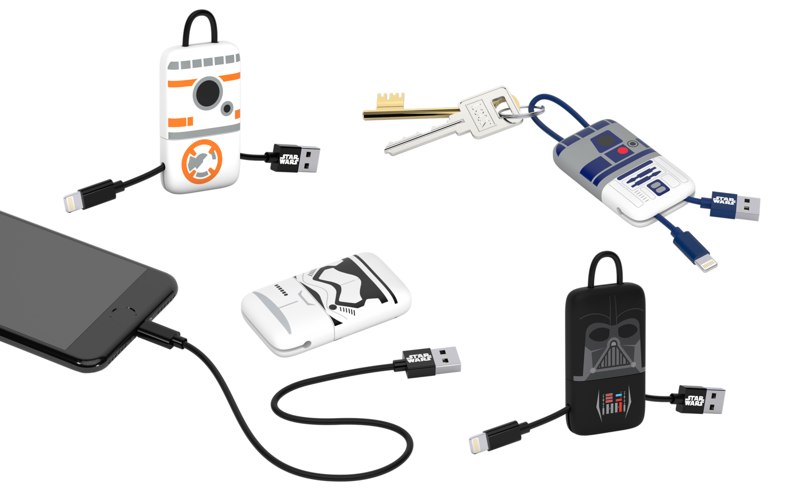 Infine, Tribe aggiunge alla gamma di prodotti ispirati alla saga Star Wars anche il mini cavo USB con una lunghezza ridotta a 22 cm, che può essere trasportato con facilità, in tasca, in borsa o agganciato alle chiavi. Il mini cavo USB è disponibile nelle grafiche di Storm Trooper, Darth Vader, BB-8 e R2-D2.