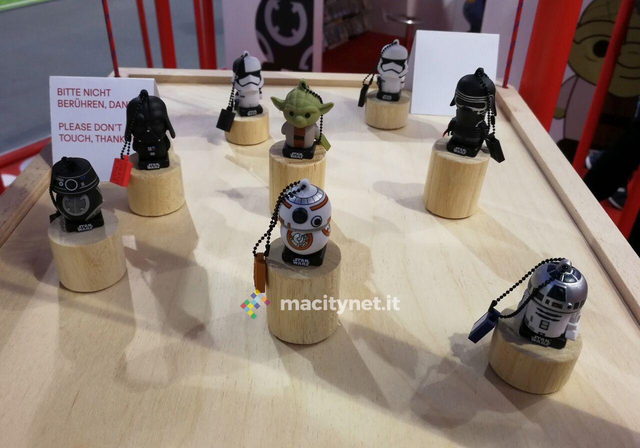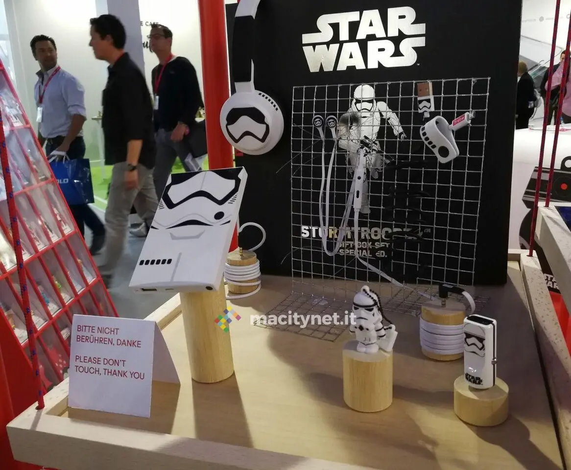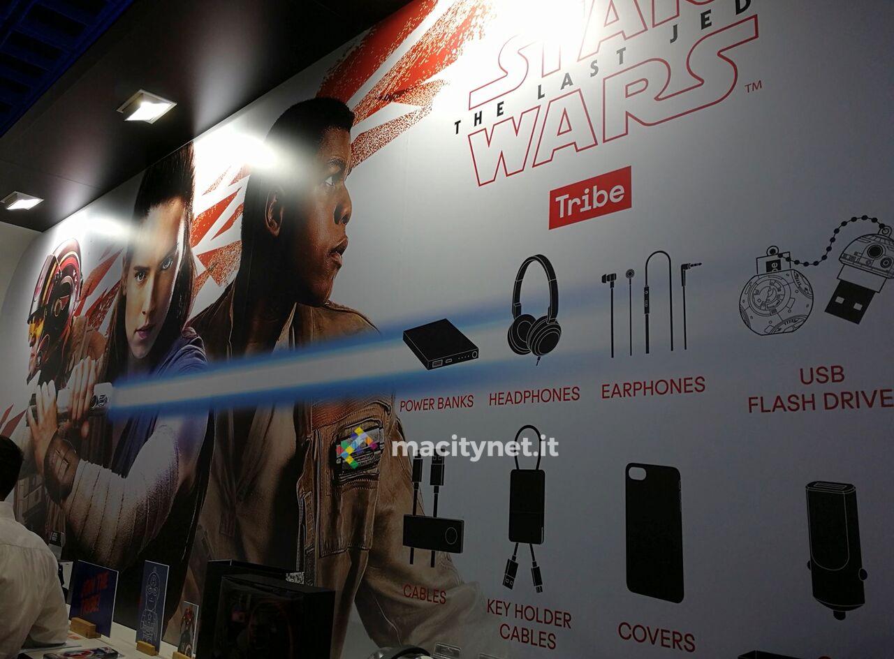 In occasione dell’ottavo episodio della saga di Star Wars, “The Last Jedi”, Tribe propone un restyling della linea di chiavette USB, proponendo una inedita Gold Edition. Tra gli accessori visti a IFA 2017 anche portachiavi Star Wars contenenti mini cavi Lightning, per il collegamento di iPhone e iPad. Ecco le foto scattate nello stand di Berlino.
