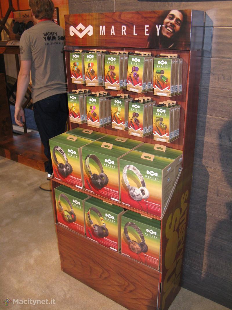 Ricordiamo infine gli auricolari della serie Marley Jammin’ con il modello base Riff da 19,99 euro realizzati in plastica riciclata e gomma ecologica, gli auricolari Liverly Up da 29,99 euro con caratteristiche simili al precedente ma design più sportivo: una volta indossate mantengono la posizione. Infine le cuffie Little Bird da 49,99 euro con chassis in acciaio e rivestimento in tessuto ecologico. In questo articolo inseriamo una galleria delle fotografie realizzate al CES da Macitynet nello stand di House of Marley: la distribuzione in Italia è curata da iStuff.