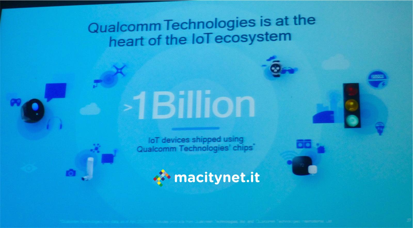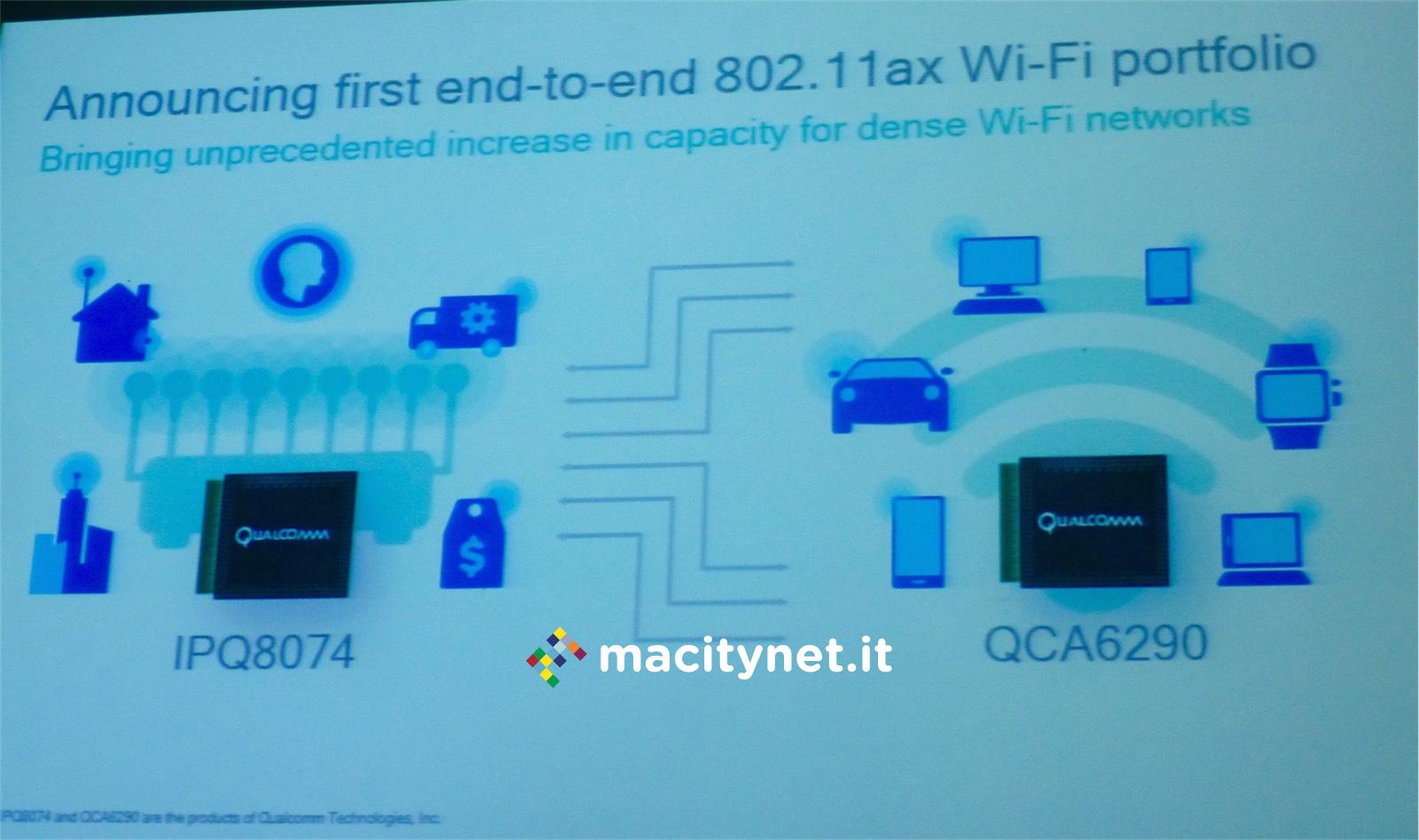 Salvatori ha dichiarato che nel mondo sono stati spediti 1 miliardo di dispositivi ioT che funzionano con tecnologie Qualcomm, inoltre la società è già attiva per i collegamenti Wi-Fi 802.11ax di prossima generazione che porteranno consistenti incrementi di prestazioni. Per il Wi-Fi 11ax Qualcomm è già presente con i chip IPQ8074 e QCA6290.