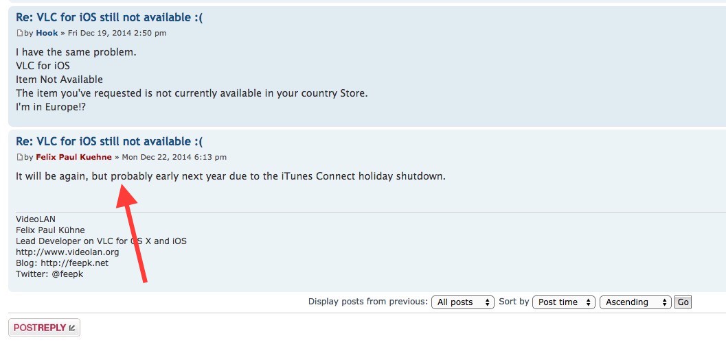 Ad anticiparne il rilancio è l’azienda sviluppatrice, Softpedia con un articolo sul sito ufficiale: la nuova versione di VideoLAN per iOS – scrive Felix Paul Kuehne, a capo del team di sviluppo – è stata appena sottoposta ad Apple per l’approvazione e dovrebbe tornare su App Store entro pochi giorni. Il ritardo è in sostanza dovuto alla chiusura di iTunes Connect, riaperto soltanto ieri dopo una settimana di pausa in occasione delle feste di Natale: probabilmente sarà disponibile nei primi giorni del 2015 – conclude – per via delle numerose richieste di aggiornamento che Apple avrà sicuramente accumulato durante questo breve periodo di festa.