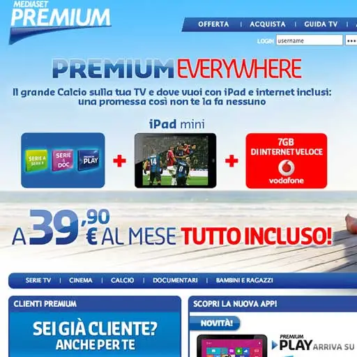 Parte oggi la promozione Premium Everywhere che offre in un’unica soluzione, a partire da 39,90 euro al mese contenuti TV e il meglio della serie A e B di Mediaset Premium, utilizzabile sulla televisione di casa o in mobilità su tablet con la rete Vodafone. L’offerta comprende il nuovo iPad Mini e 7GB di navigazione internet al mese.