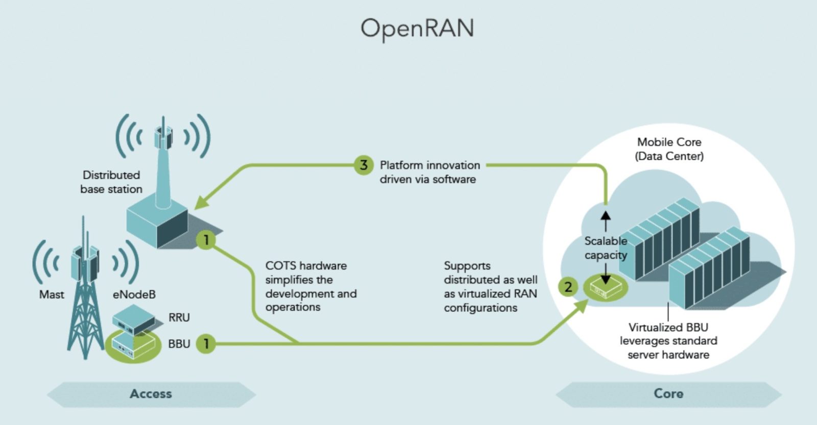 OpenRAN standardizza la progettazione di hardware e software destinati a infrastrutture, ripetitori e antenne che reendono possibile l’accesso via radio alle reti cellulare e permettono la telecomunicazione in tutti i punti di un territorio suddiviso in aree di non grandi dimensioni, chiamate “celle”, ognuna delle quali è servita da una diversa stazione di telecomunicazione.