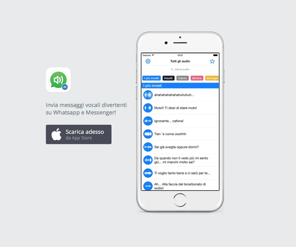 Voice Messenger è davvero immediata e intuitiva da utilizzare: una volta individuato l’audio che si vuole inviare, anche grazie ai vari tag presenti all’interno dell’app, o per il tramite della funzione di ricerca, basterà un tap per inviarlo direttamente su Messenger o Whatsapp ai propri amici. Nonostante l’app sia di recente pubblicazione, il database di frasi già presenti è comunque alto: Voice Messenger ne conta già centinaia, con altre certamente in arrivo nei prossimi aggiornamenti. Si possono trovare messaggi vocali pronti e molto divertenti per qualsiasi occasione: ad esempio per un buongiorno originale, per esultare insieme dopo il goal della squadra del cuore, per fare degli auguri, per esprimere il proprio stato d’animo e anche per “insultare” scherzosamente qualche amico.