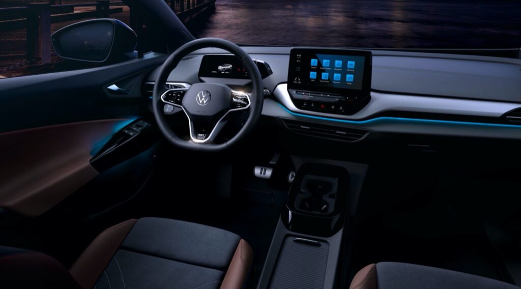 Gli interni idella versione di lancio in Germania, ID.4 1st Max, vanterà sedili Agr rivestiti di similpelle e di una microfibra realizzata per il 20% da materiali riciclati. Le sedute (riscaldabili) vantano certificazione AGR, ente che certifica componenti in grado assicurare specifici standard che riguardano ergonomia e postura. I colori previste per le sellerie il grigio platino e il “marrone Firenze”, che si abbinano al piano black e bianco elettrico delle modanature.