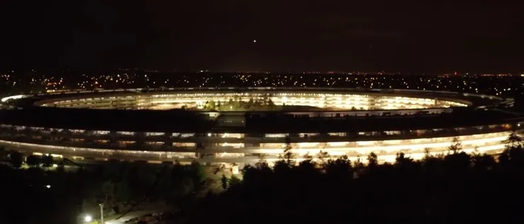 Le prime sequenze riprendono gli sterminati garage spingendo il drone fino sotto al tetto e ai pannelli solari. L’esplorazione prosegue con un volo radente sulle cime degli alberi che permette di cogliere gli addetti ai lavori impegnati nei lavori di paesaggistica per costruire l’imponente area verde che occupa una parte consistente del campus. Affascinanti le inquadrature delle grandi vetrate che mostrano i lavori finali sull’arredamento e le attrezzature per gli uffici. Per la prima volta possiamo anche ammirare l’imponente Apple Park tutto illuminato in notturna uno spettacolo che, ne siamo certi, distrarrà tutti gli automobilisti, gli abitanti di Cupertino e tutte le persone che si trovano di passaggio nelle immediate vicinanze del cantiere. L’insediamento dei primi dipendenti in Apple Park dovrebbe iniziare tra pochi giorni.