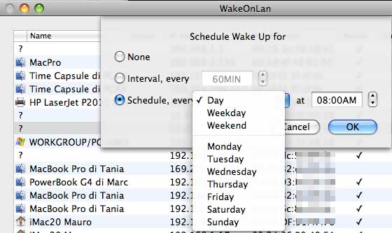 Oltre alla funzionalità di svegliare direttamente i computer, è possibile programmare la sveglia ogni tot minuti, oppure in determinati giorni e ore della settimana (utile, ad esempio, per avviare un computer ed eseguire un backup nei fine settimana).