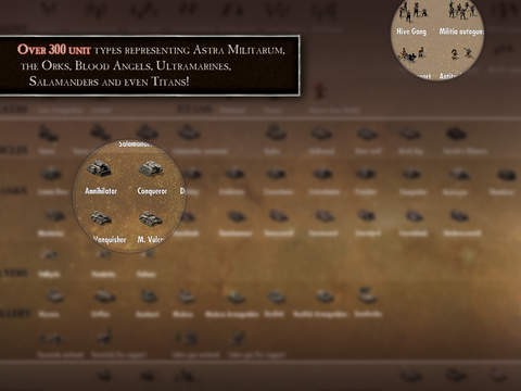 L’app offre la possibilità di condurre la campagna di guerra attraverso trenta scenari principali in centinaia di ore di gioco e di scegliere tra trecento tipi di unità diverse con i relativi sistemi di combattimento (ognuna delle quali ha le proprie statistiche ed effetti grafici interessanti): dagli orchi alla Legione d’acciaio di Armageddon, passando dagli eroici Space marine fino ai Titani. Dopo il successo su PC dello scorso novembre, Warhammer 40.000: Armageddon si prepara ad essere un gioco irrinunciabile per gli appassionati di RPG anche su piattaforma iOS. Il gioco e tutte le sue espansioni sono ora disponibili per iPad. Warhammer 40,000: Armageddon, sviluppato da Slitherine Software UK Ltd.
