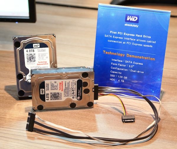 L’interfaccia SATA Express promette maggiore velocità, consumi inferiori e durata maggiore dei dispositivi. Nei test con un disco ibrido di WD con SSD da 128GB e HDD tradizionale da 4 TB, si è riusciti ad arrivare a un picco di 695 MB/s sfruttando ovviamente una motherboard con controller compatibile.