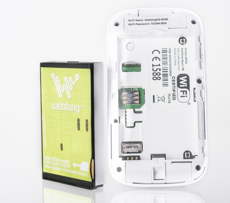 A prima vista Webbing Spot sembra identico a qualsiasi altro hotspot portatile per il collegamento dati cellulare, ma all’interno integra una innovativa soluzione pensata per garantire l’accesso a Internet praticamente in tutto il mondo. Infatti invece di ospitare una sola scheda SIM, all’interno di Webbing Spot ce ne sono ben 8.