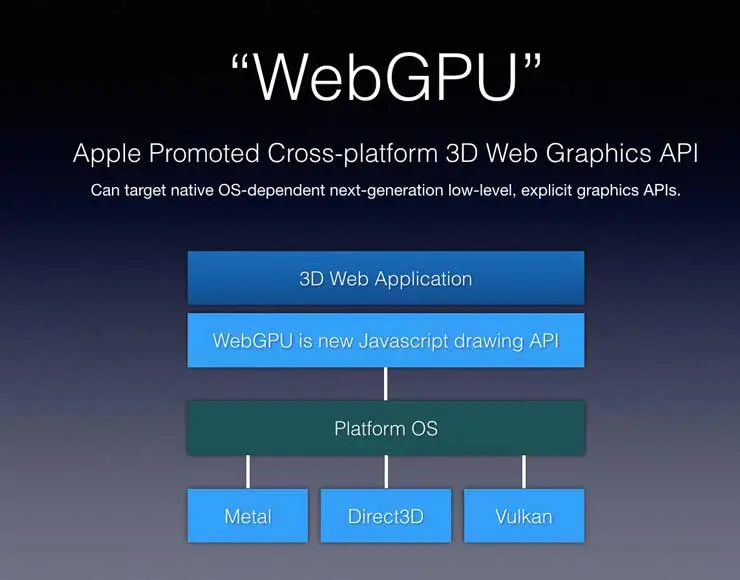 Sul blog degli sviluppatori che si occupano di WebKit, si parla di progressi nel campo dell’hardware delle GPU che hanno permesso altrettanti miglioramenti nelle API software. Si citano piattaforme quali Metal, Direct3D 12 di Microsoft e le Vulkan del Khronos Group, spiegando che queste richiedono meno investimenti e offrono migliori prestazioni rispetto a quanto possibile con lo standard OpenGL. “Sebbene queste tecnologie sfruttino concetti simili” si legge nel post di Dean Jackson, “sfortunatamente nessuna è disponibile per tutte le piattaforme”. “Cosa significa questo per il web? Queste nuove tecnologie sono chiaramente il prossimo passo evolutivo per contenuti che possono trarre beneficio dalla potenza della GPU”.