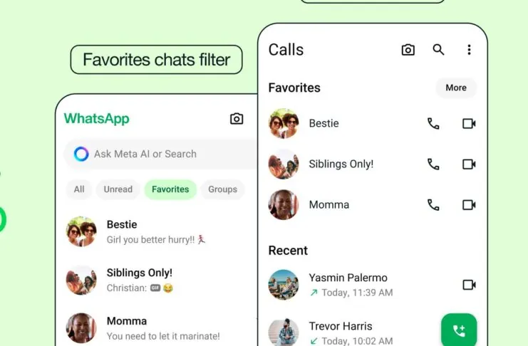 WhatsApp ora permette di trovare rapidamente le persone e i gruppi più importanti nella parte superiore della scheda Chiamate e come filtro per le chat.