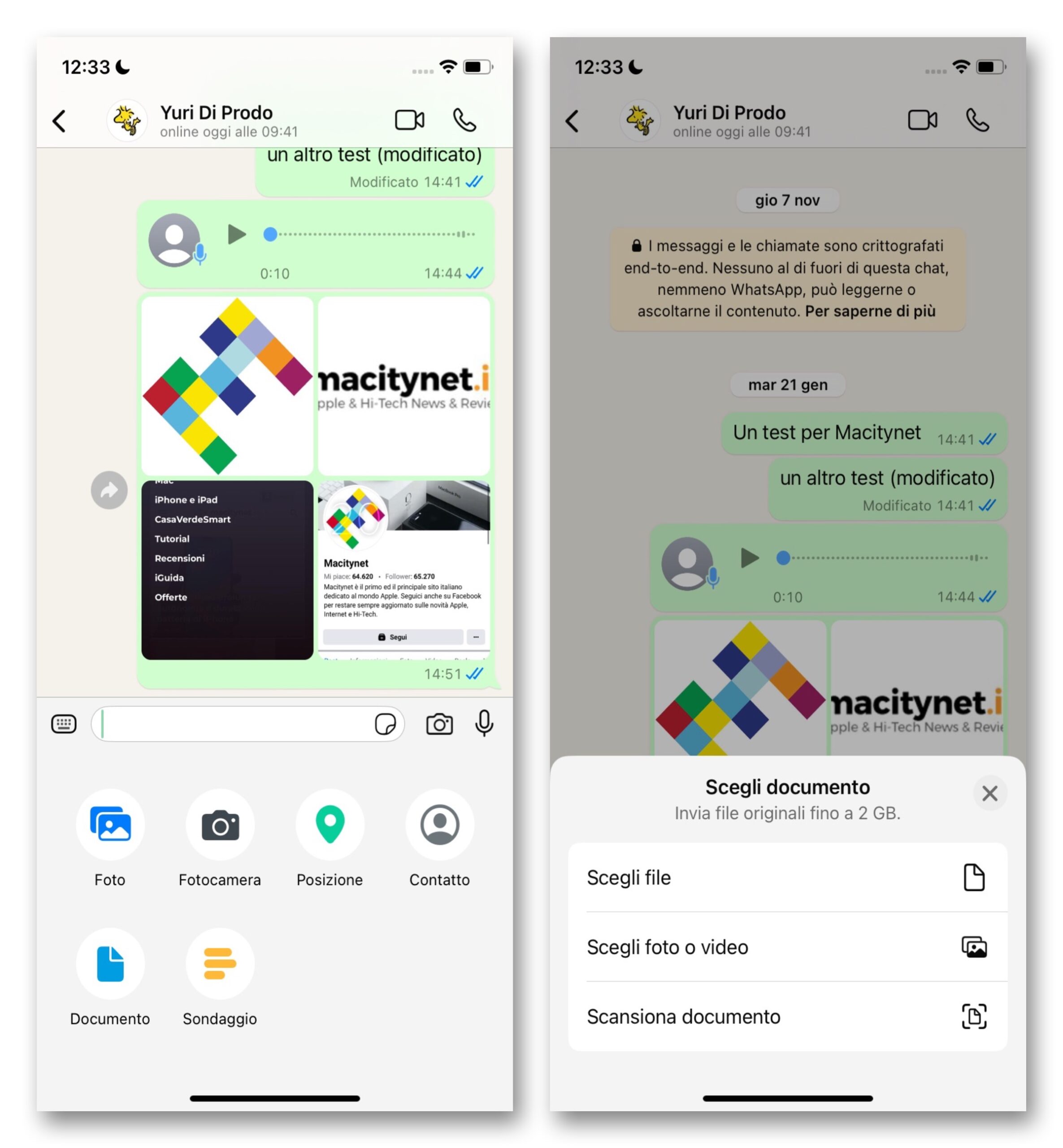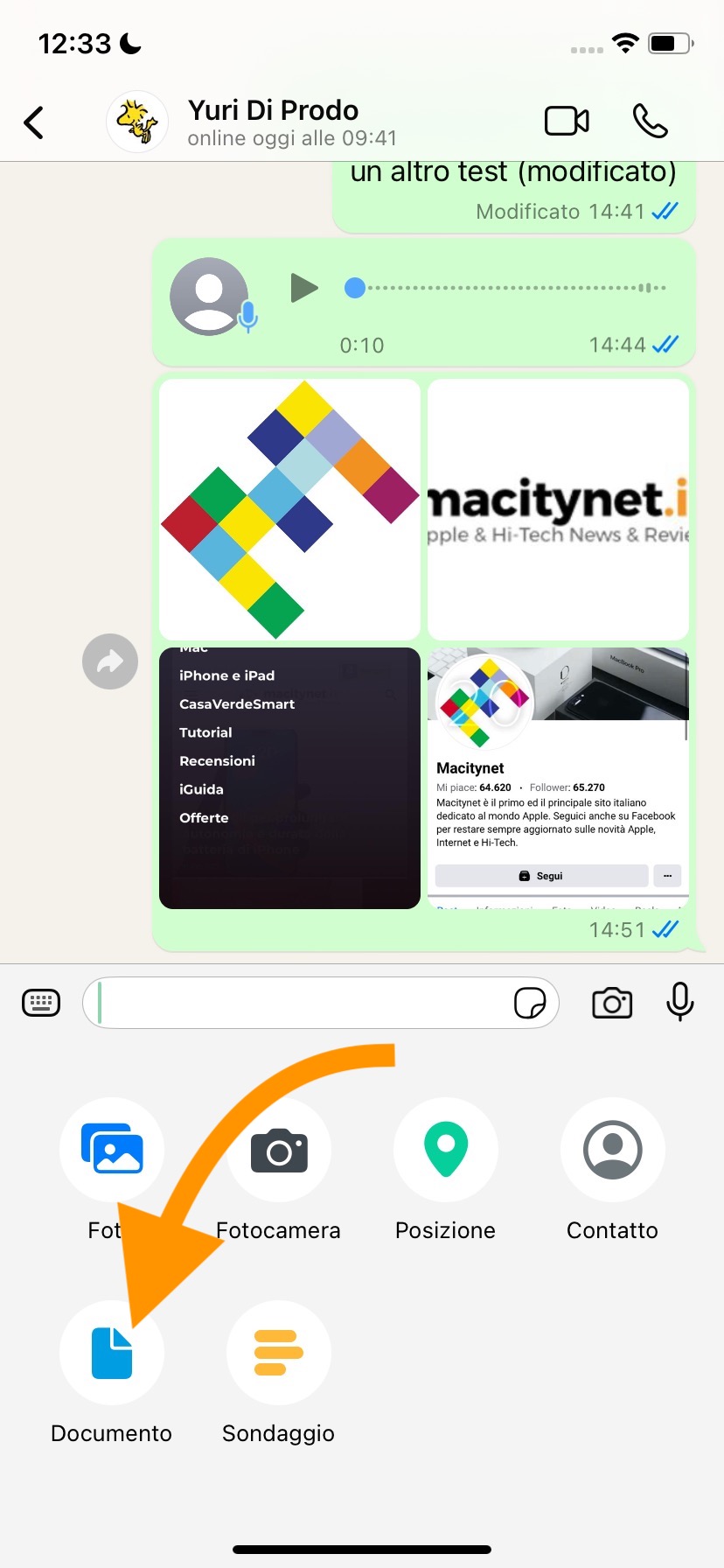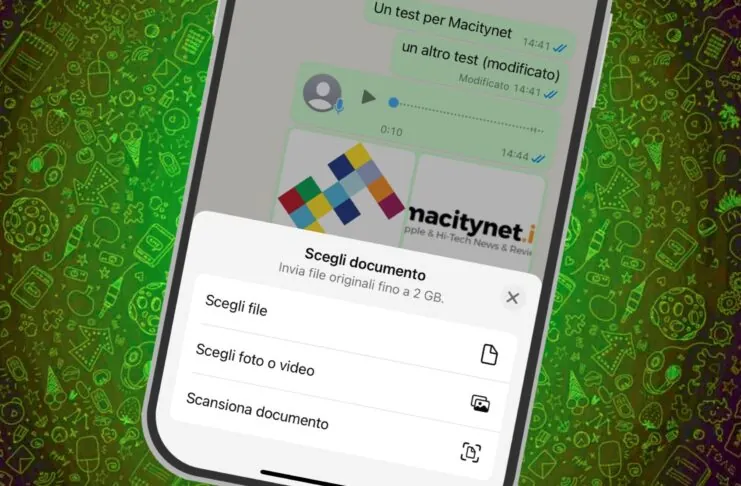 Come dicevamo, la scansione verrà allegata in formato PDF, consentendo così a chiunque di visualizzarla correttamente sul proprio dispositivo; che sia un altro iPhone, un telefono Android o un computer che sta accedendo alla chat via app o browser.