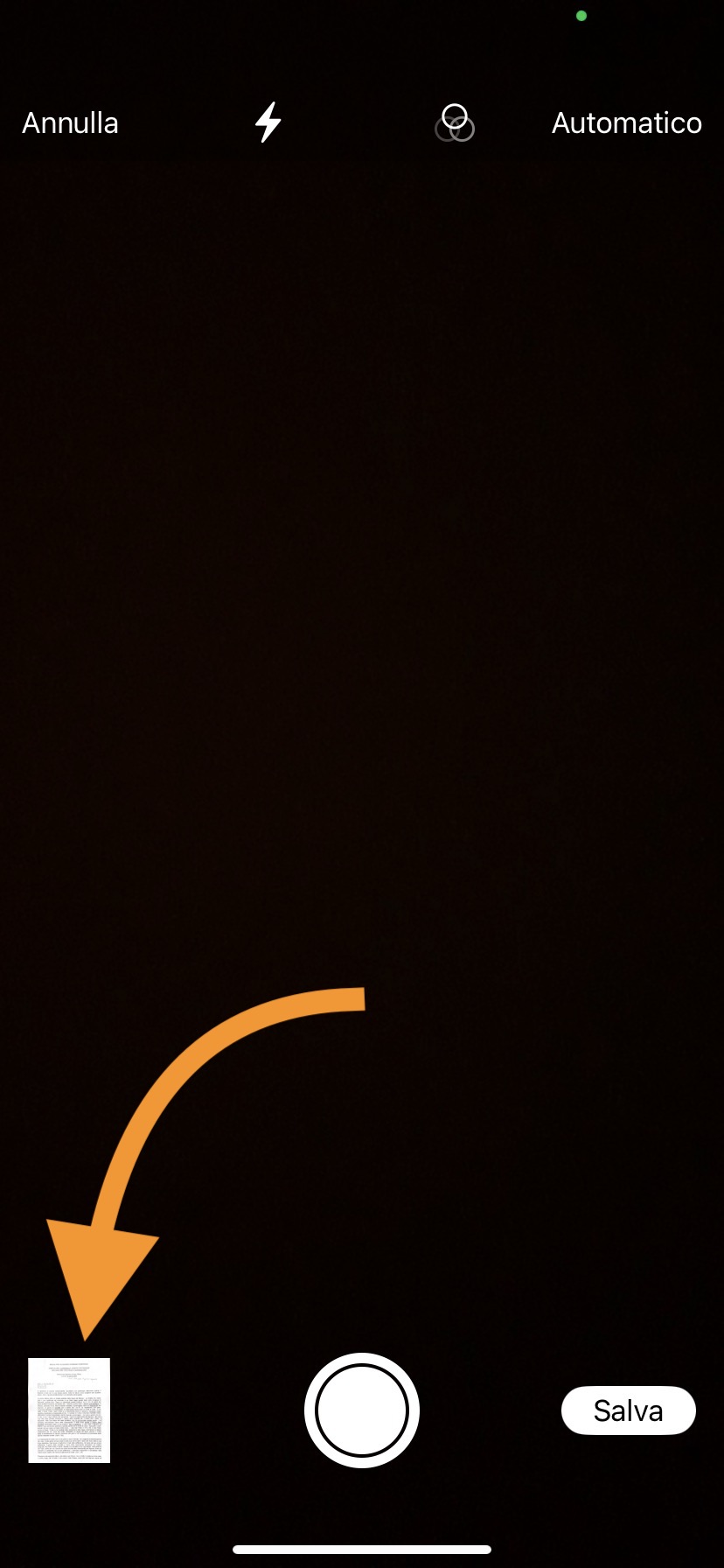 A quel punto verrà brevemente mostrata una anteprima al centro dello schermo, che poi verrà spostata nell’area in basso a sinistra per permettere di aggiungere altre scansioni all’invio.