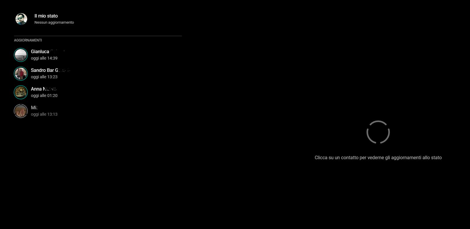 Da qualche ora, accanto al proprio nome è apparsa una nuova icona di forma circolare, che dà accesso alla pagina relativa allo stato, il nostro e anche quello dei nostri contatti. Da qui, proprio come accade sulle versioni iOS e Android dell’app di messaggistica, sarà possibile visionare gli stati dei propri amici, ovviamente se disponibili.