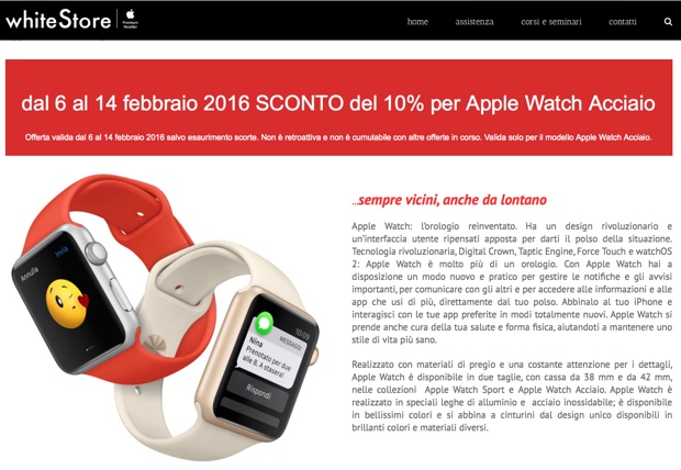Nei negozi whiteStore Apple Premium Reseller di Brescia, Bergamo ed Erbusco, a partire dal 6 febbraio è possibile acquistare Apple Watch in acciaio con il 10% di sconto, una promozione che rimane valida solo fino al 14 febbraio, giorno di San Valentino. Invece per tutto il mese è possibile acquistare i dispositivi audio Beats con il 20% di sconto.