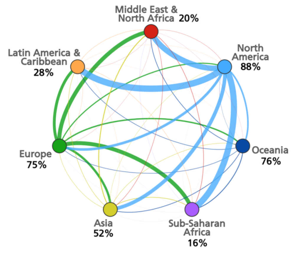 Secondo uno studio dell’Università di Oxford, la metà di tutte le modifiche apportate agli articoli su Wikipedia sono state scritte in soli cinque paesi. Il 45 per cento dei cambiamenti alle voci di Wikipedia sono stati eseguiti da utenti provenienti da Regno Unito, Stati Uniti, Francia, Germania e Italia e i Paesi Bassi, uno dei primi dieci paesi per numero di interventi sulla grande enciclopedia online, che hanno un peso maggiore sulle modifiche eseguite a Wikipedia rispetto all’intera Africa.