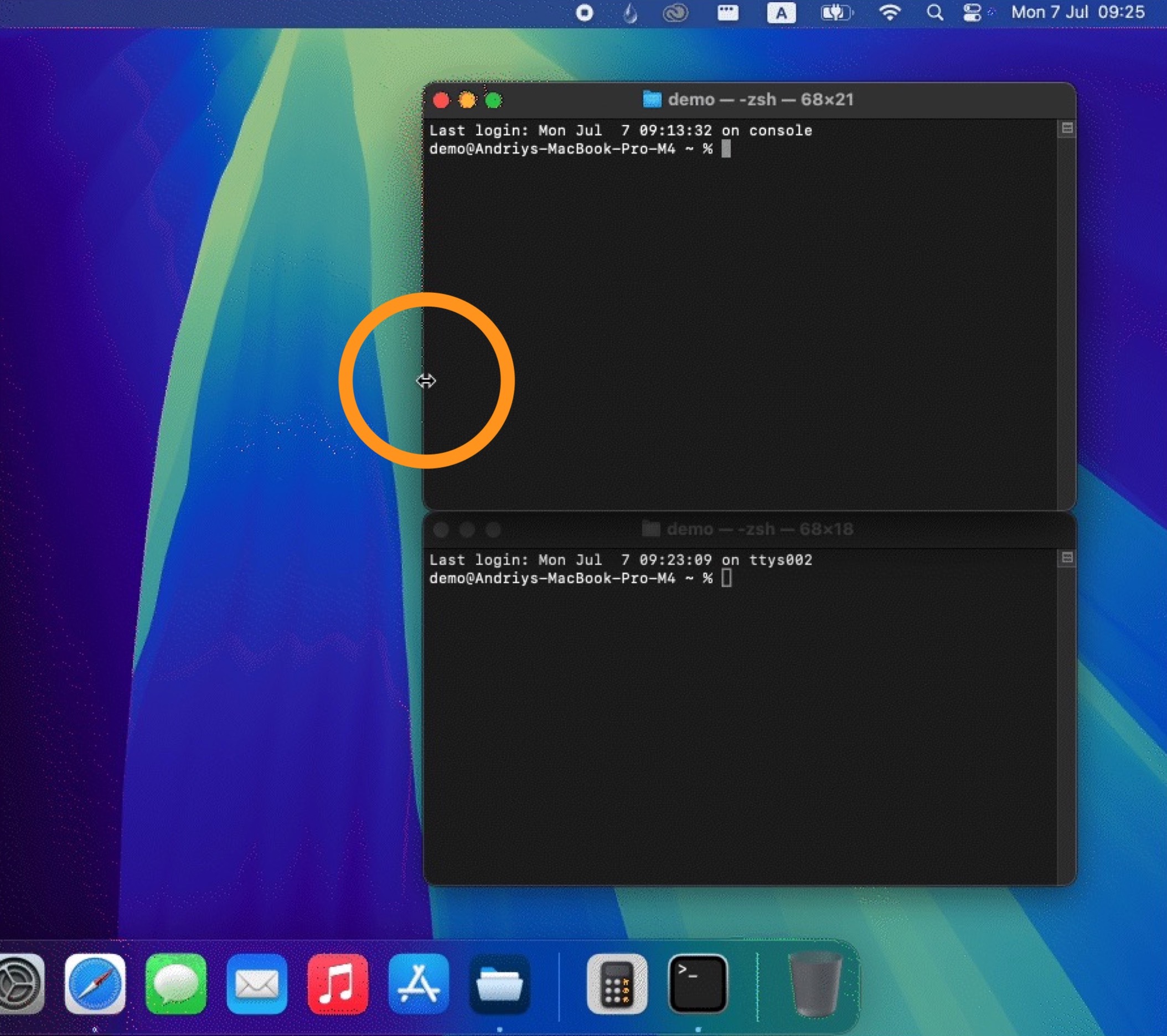 - Trascinando uno degli altri lati, per aumentare o ridurre le dimensioni complessive di entrambe le finestre.