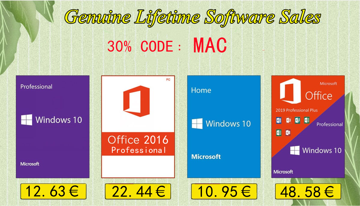 Windows 10 PRO + Office 2016 Pro Plus Keys a 32.97EUR (dopo il 30% di sconto con coupon MAC)