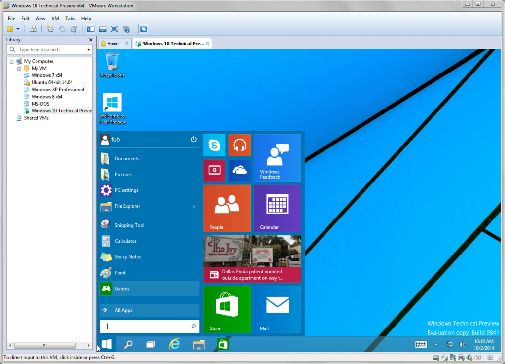 La versione preliminare di Windows 10 può essere testata sui virtualizzatori per Mac come Parallels Desktop e VMWare Fusion. La Tech Preview consente di testare le funzionalità del nuovo sistema e il download è libero a tutti: basta iscriversi al programma Windows Insider Program, servizio che dà diritto a ricevere gli aggiornamenti di questa versione sviluppo e fornire a Microsoft feedback sul funzionamento del nuovo sistema.