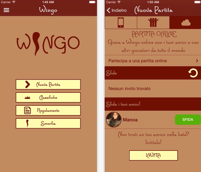 Lontano dalle feste natalizie, su App Store approda Wingo, la tombola iOS che si può giocare anche online. L’applicazione è sostanzialmente caratterizzata da tre modalità: Partita Veloce dove, una volta scelto il numero di avversari, si gioca a tombola semplicemente controllando una cartella e sperando di vincere prima degli altri. Partita Reale è invece pensata per chi vuole giocare a tombola con altri amici: è sufficiente che ciascuna persona abbia un iPhone o un iPad per giocare. Uno gestirà il tabellone, tirando fuori i numeri in modalità random uno dopo l’altro, mentre gli altri visualizzeranno la propria cartella sullo schermo toccando di volta in volta i numeri estratti.