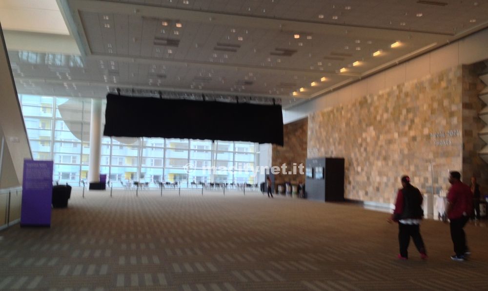 Nel momento in cui scriviamo gli inviati di Macitynet sono all’interno del Moscone Center di San Francisco per prendere posto al keynote di Apple. All’interno del centro congressi è possibile osservare diversi striscioni ancora coperti da grandi teli neri. Così sono celate alcune delle novità principali che verranno presentate tra pochi minuti dai top dirigenti della Mela durante il keynote. Potrebbe trattarsi dei nuovi loghi di OS X 10.9 e soprattutto di iOS 7: gli striscioni potrebbero anche mostrare le icone delle app principali di iOS 7.