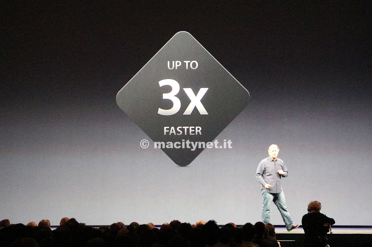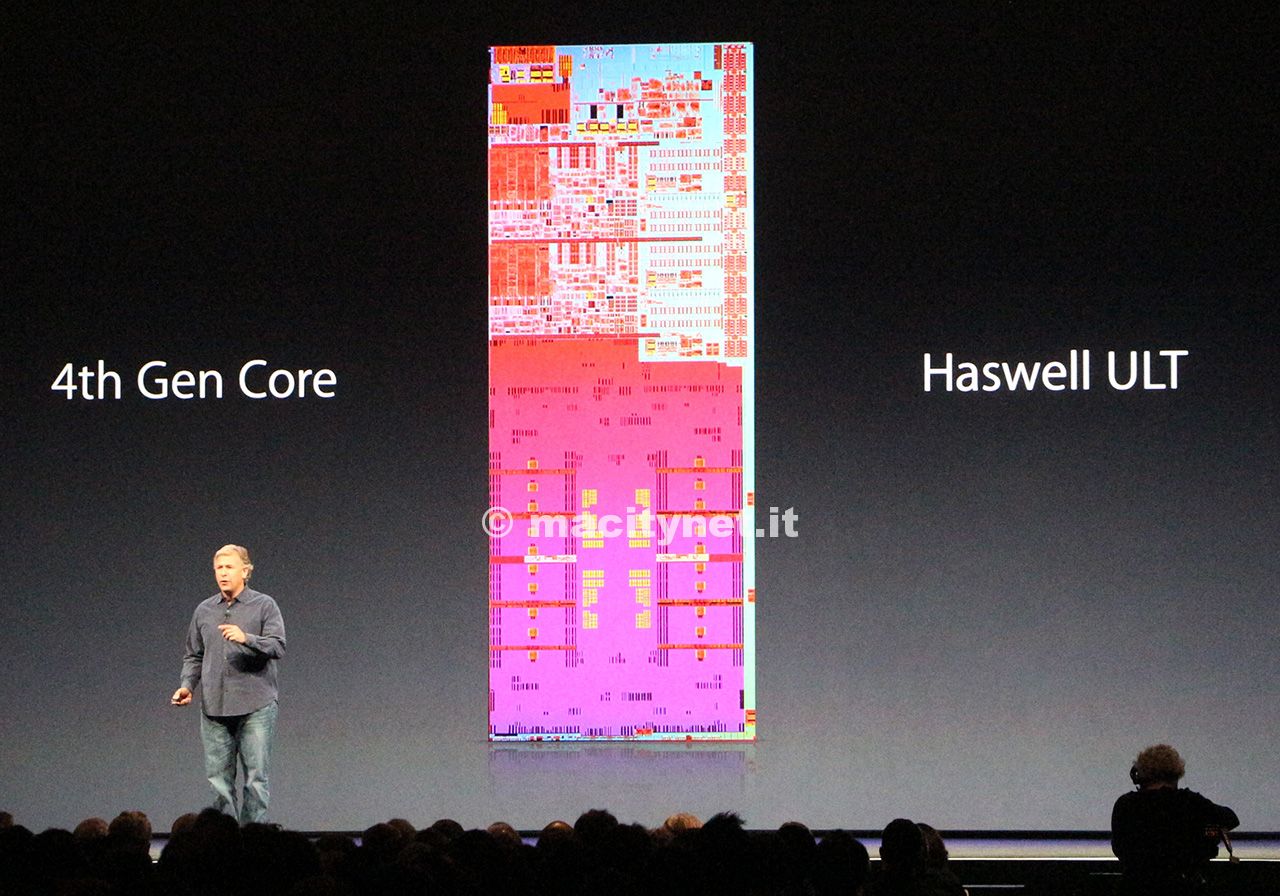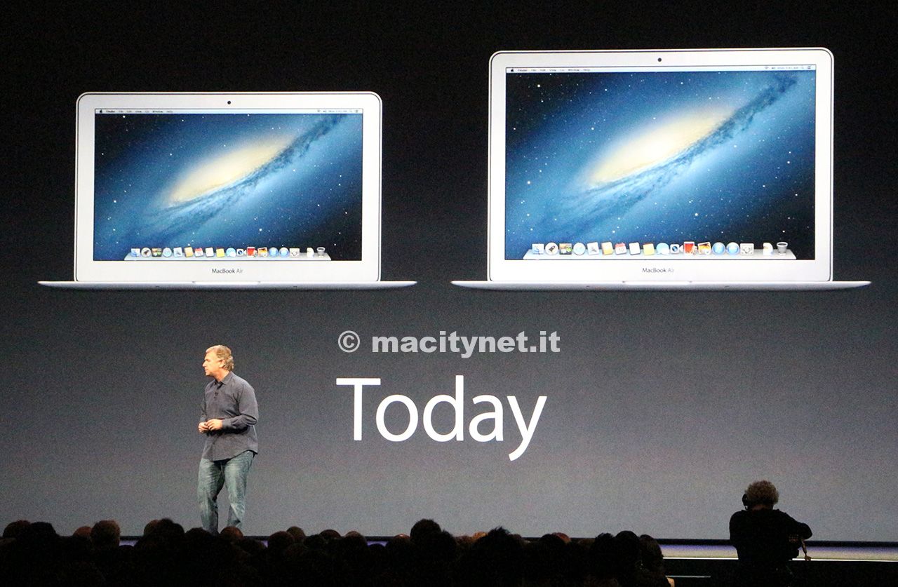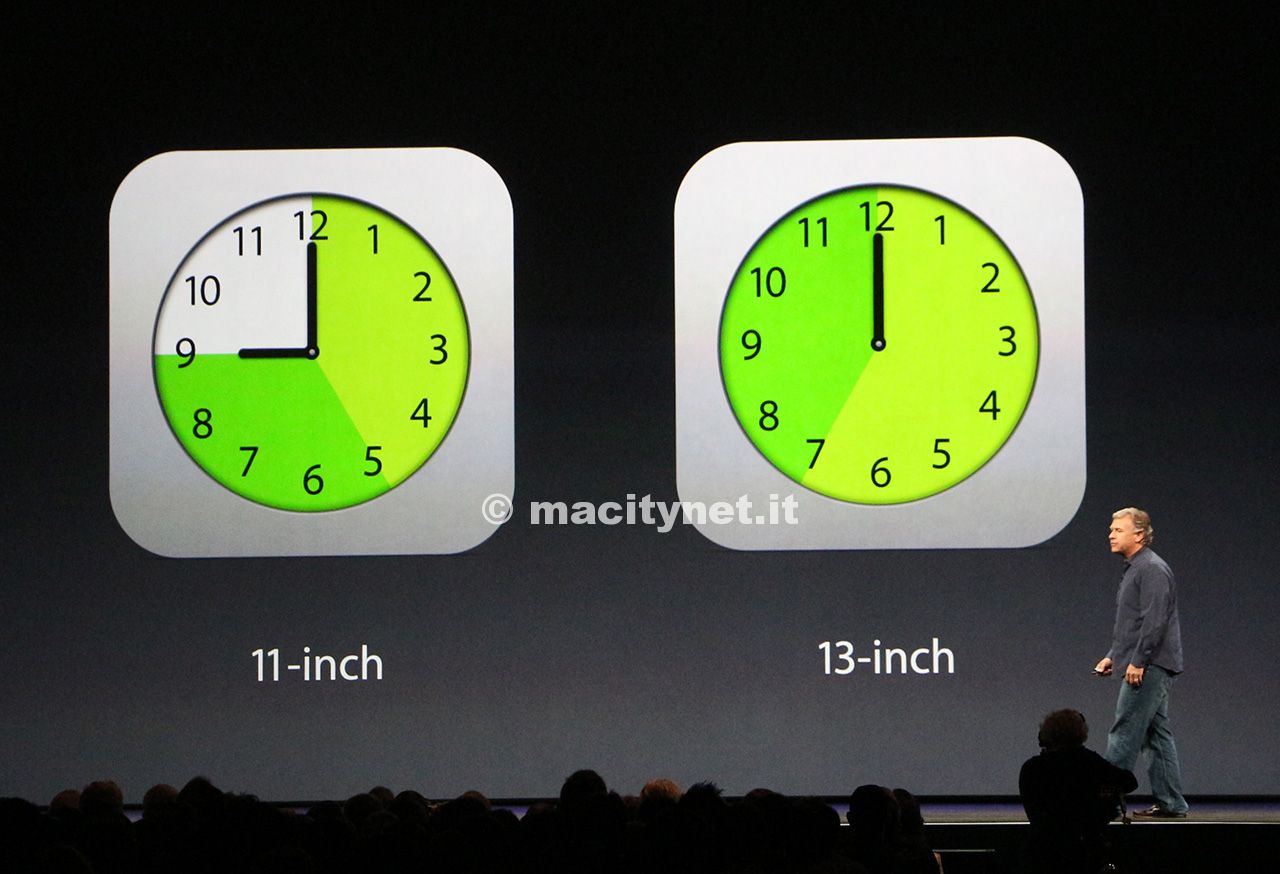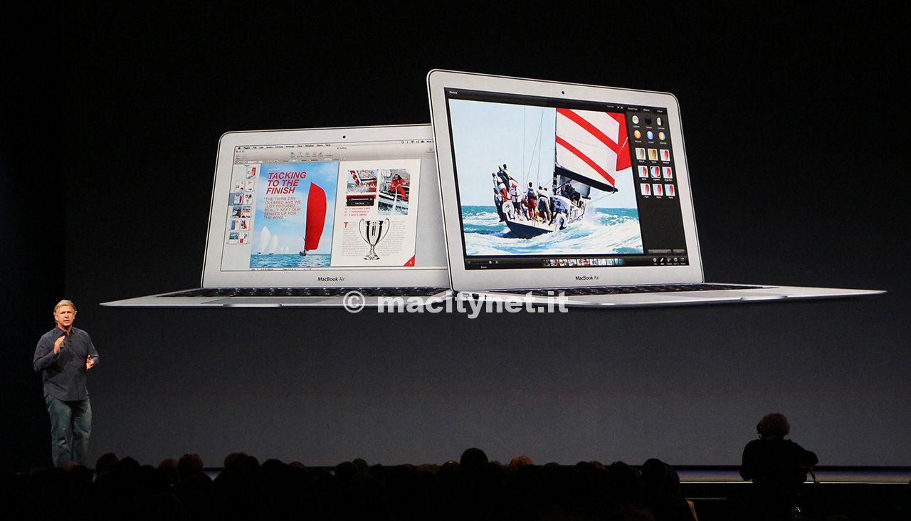 Una batteria che dura tutto il giorno. Ecco la novità dei nuovi MacBook Air così come essa è stata annunciata con enfasi da Phil Schiller (vicepresidente per il producting marketing in Apple). I nuovi portatili ultrasottili (“i migliori portatili per chi usa un computer quotidianamente”), offriranno 9 ore di autonomia per il modello da 11 pollici e 12 ore per il modello da 13 pollici, grazie ai nuovi processori Haswell; ma i vantaggi non si fermeranno alla batteria: le nuove macchine, che sono molto più veloci, hanno nuovi chip Wi-Fi 802.11AC con tre volte la velocità.