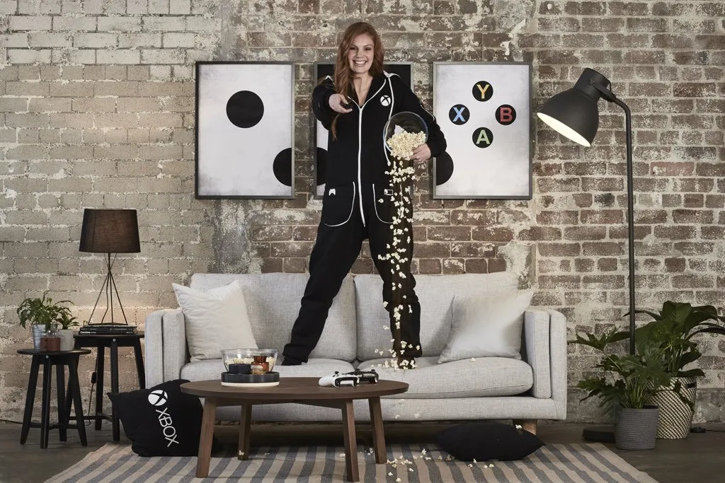 Xbox Onesie sembra quasi una tutina per neonati, adattata però per calzare perfettamente su adulti, che amano il mondo Xbox e, naturalmente, quello dei videogiochi. Simile ad un grande accappatoio, con cappuccio e pantalone, la particolare tuta, disponibile per uomo o donna, presenterà due tasche laterali particolarmente ampie, dove i giocatori potranno riporre i controller o telecomandi vari. Anche il cappuccio è pensato per i giocatori che indossano grandi cuffie durante le sessioni videoludiche.