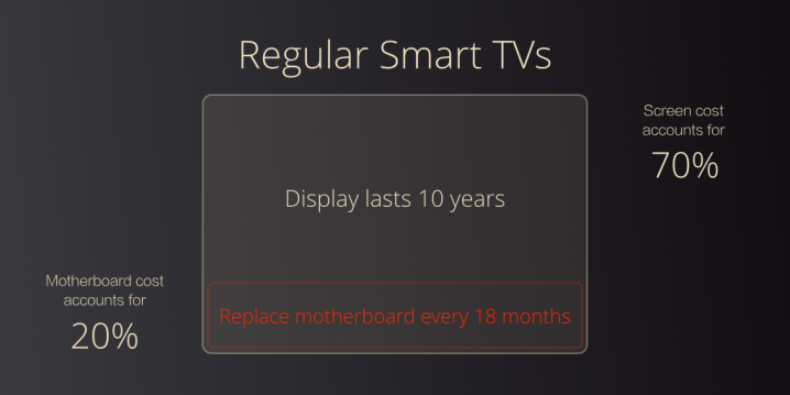Il prezzo super aggressivo non è solamente dovuto agli ingenti volumi possibili per Xiaomi che opera in Cina sul più grande mercato nazionale al mondo, che senza dubbio permettono di spuntare prezzi altrettanto competitivi da LG e altri fornitori. Il segreto di Xiaomi Mi TV 3 sta nella soundbar. La proposta del costruttore cinese è orginale: mentre i pannelli possono essere impiegati con soddisfazione dall’utente anche per 10 anni, i circuiti di controllo, processore e scheda madre richiederebbero un aggiornamento almeno ogni 18 mesi per avvantaggiarsi degli ultimi ritrovati. Tutti questi componenti nella nuova Xiaomi Mi TV 3 sono integrati nella soudbar, così al prossimo aggiornamento basterà mantenere il grande pannello da 60” e acquistare una nuova soundbar con una spesa sensibilmente più contenuta. Presentata ieri anche la Mi TV Bar a 999 renminbi, circa 140 euro, un investimento modesto per dotare di nuovo cuore e cervello la nostra TV in salotto, semplicemente collegando qualche filo.