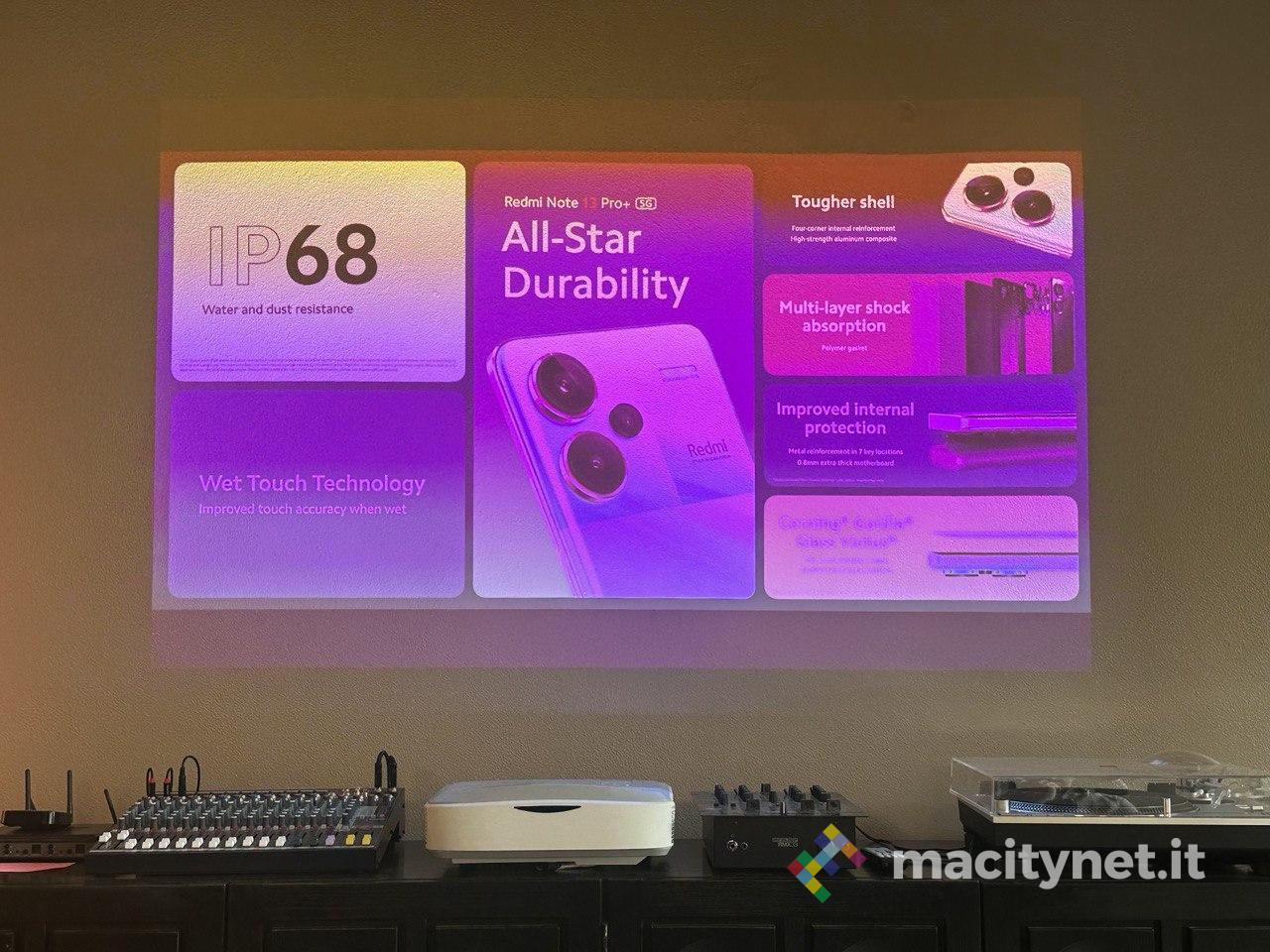 Per la prima volta lo schermo curvo ai lati approda nella gamma Redmi Note solo nel modello 13 Pro+ 5G: insieme alle cornici super ridotte intorno al display e al sottile profilo dello chassis, il terminale offre aspetto e sensazioni all’impugnatura identici a quelli dei top di gamma più costosi.