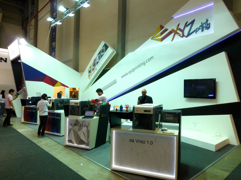 Gli utenti interessati alla stampa 3D possono già contare invece sulla Da Vinci 1.0, stampante 3D personale già venduta pronta per l’uso: è proposta al prezzo di 599 euro, molto abbordabile per questo tipo di dispositivi. Per trovare una soluzione di stampa 3D più economica bisogna cercare tra le stampanti 3D per amatori vendute in kit di montaggio, una soluzione poco pratica e non adatta per tutti. Nello stand XYXprintig è possibile ammirare la gamma completa di stampanti 3D e anche di dispositivi all-in-one: oltre al prezzo abbordabile questi dispositivi permettono di creare modelli 3D di grandi dimensioni, fino a 20x20x20 centimetri, sono indicati non solo per l’uso personale ma anche nel campo educational e per l’impiego professionale, soprattutto la modellazione e la protopizzazione. Sul sito XYZprinting sono disponibili numerosi tutorial video sull’uso della stampante, modelli 3D da scaricare pronti per la stampa o per la modifica: le stampanti da Vinci sono compatibili con Mac e PC.