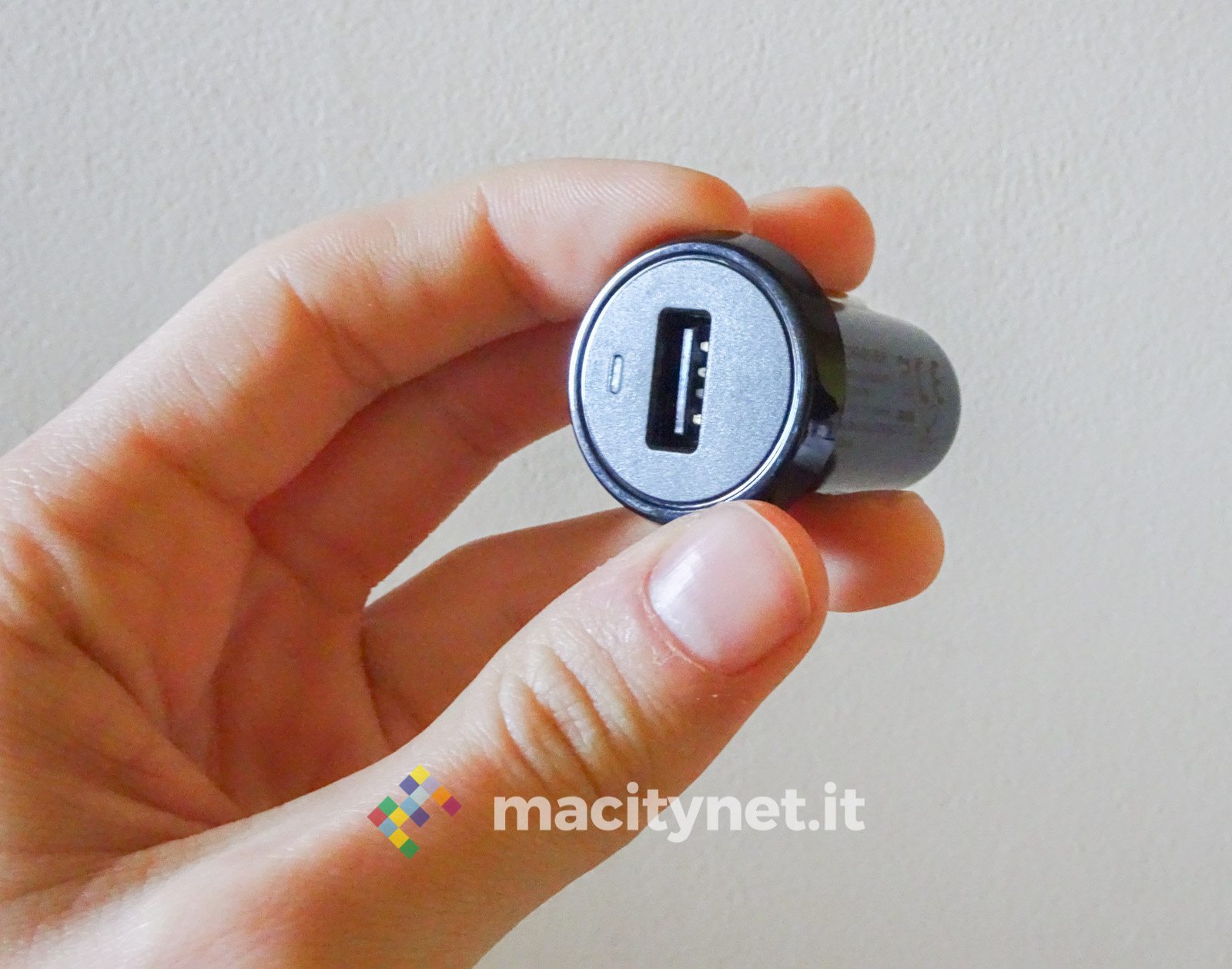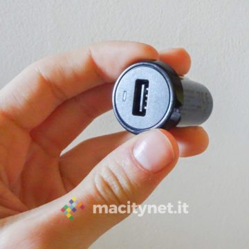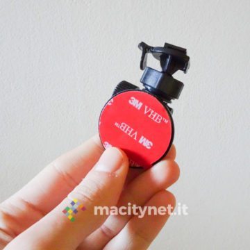 Nella confezione ci sono inoltre gli stessi accessori: clip per l’aggancio al parabrezza tramite adesivo 3M, cavo microUSB lungo 2m per l’alimentazione, alimentatore USB con spina accendisigari e manualistica.