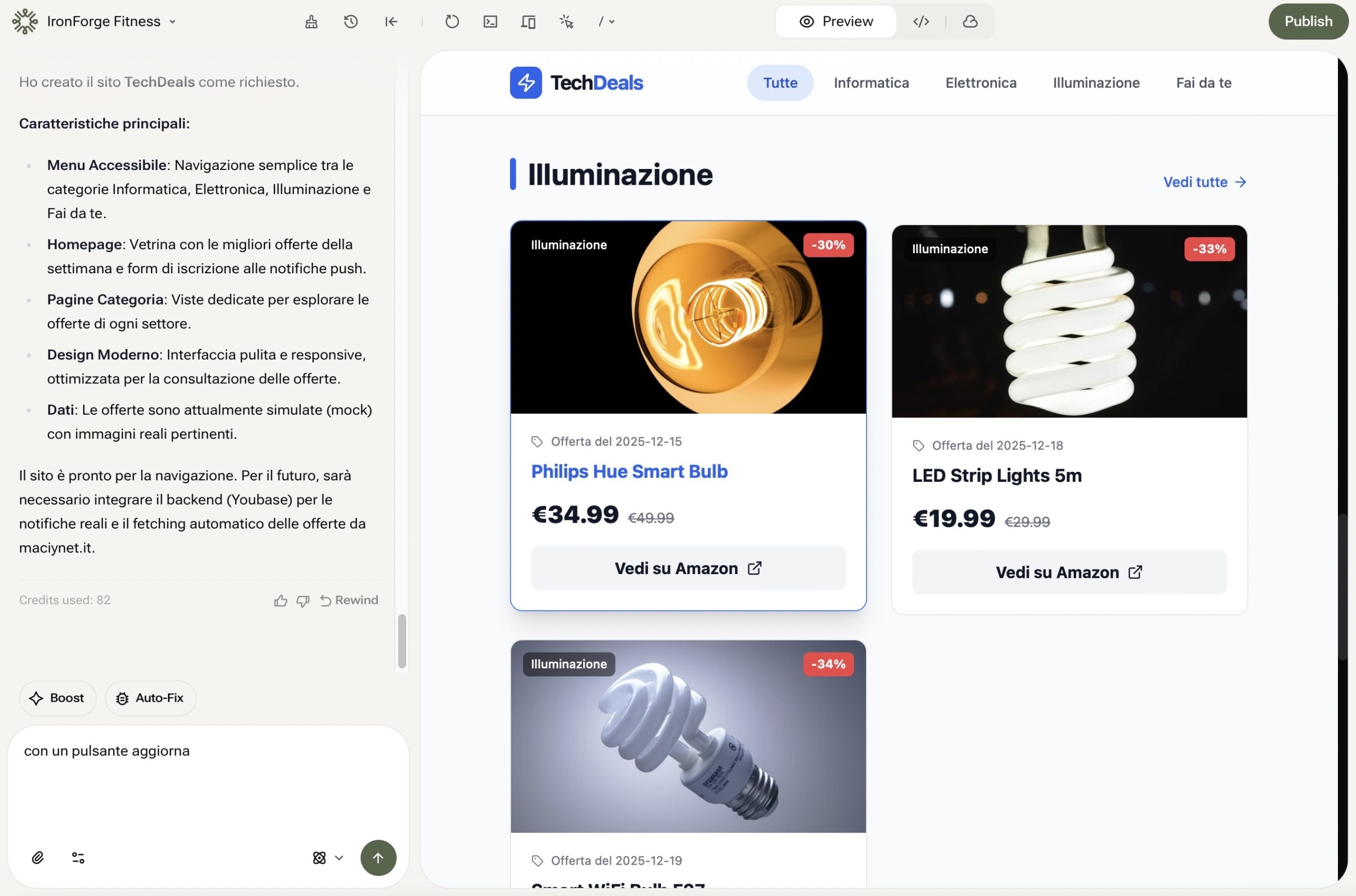 Qui sotto una veloce esecuzione di un sito di consigli su prodotti in offerta su Amazon.