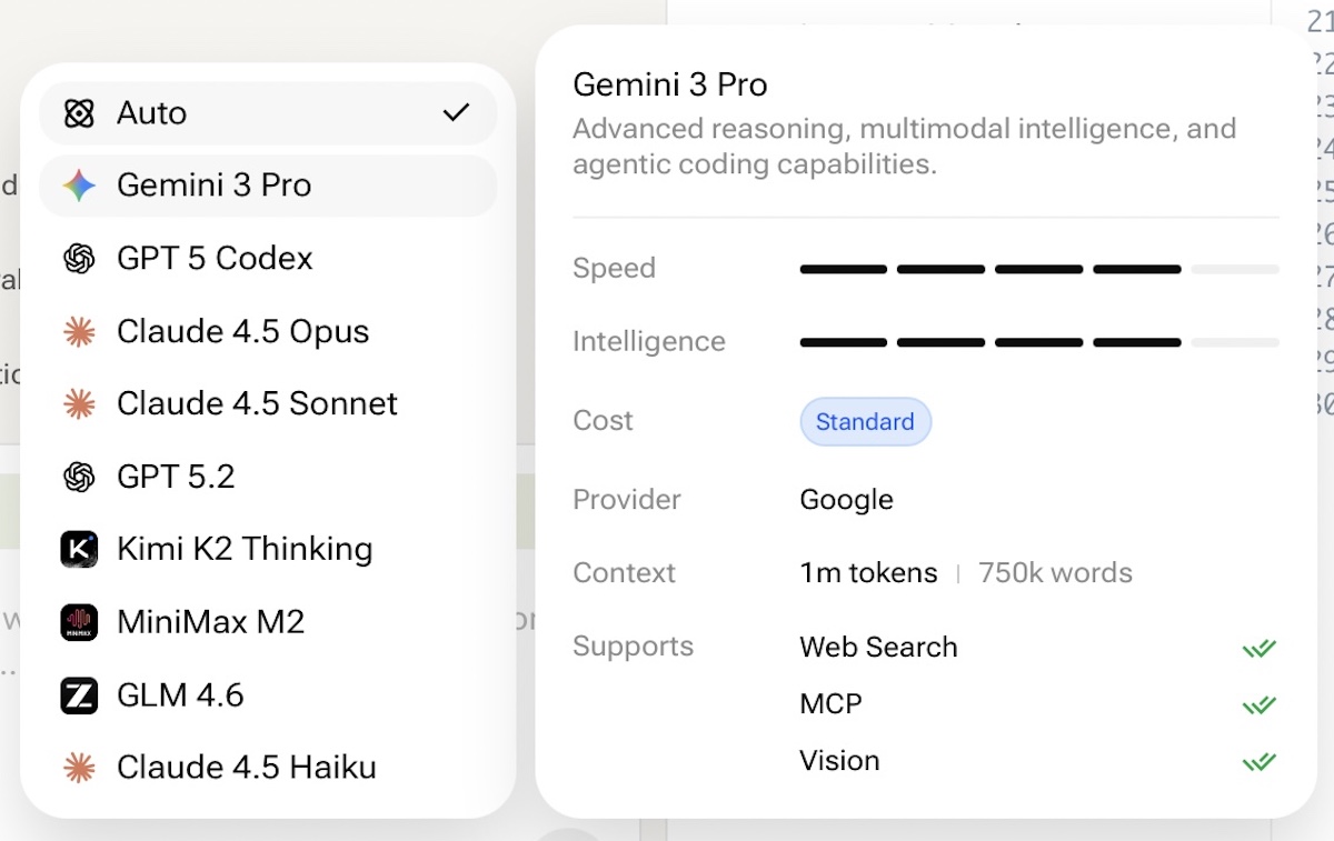 Model Switching: scegliete il cervello AI dietro il vostro codice, in pratica potete decidere con quale modello AI far lavorare YouWare: GPT-5-Codex, Claude 4.5 Sonnet, Gemini 3 o quelli più aggiornati disponibili nella piattaforma.