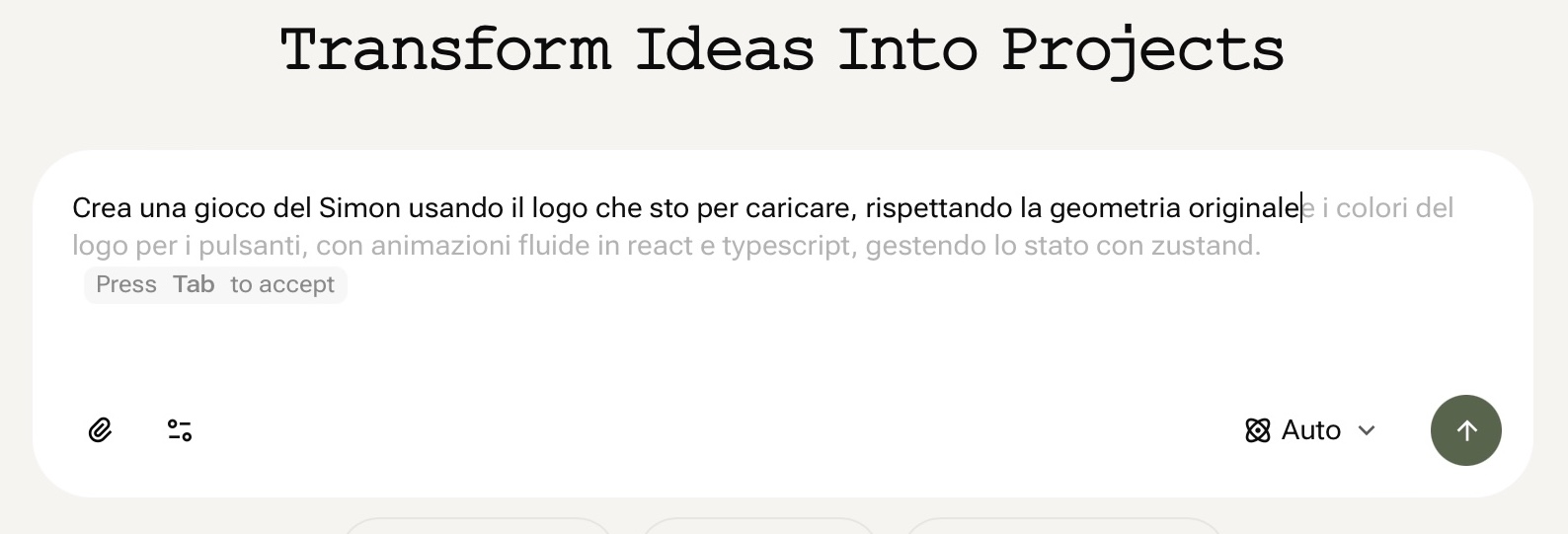 • Trasforma rapidamente idee e prompt in progetti funzionanti, riducendo drasticamente i tempi