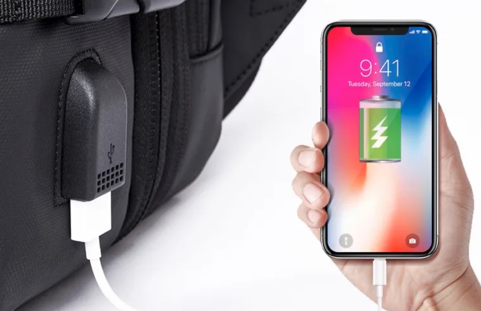 Lo schienale è traspirante e a lato c’è una presa USB per ricaricare al volo un cellulare senza dover aprire lo zaino (basta collegare l’altra estremità a una powerbank da tenere invece sempre carica nello zaino).