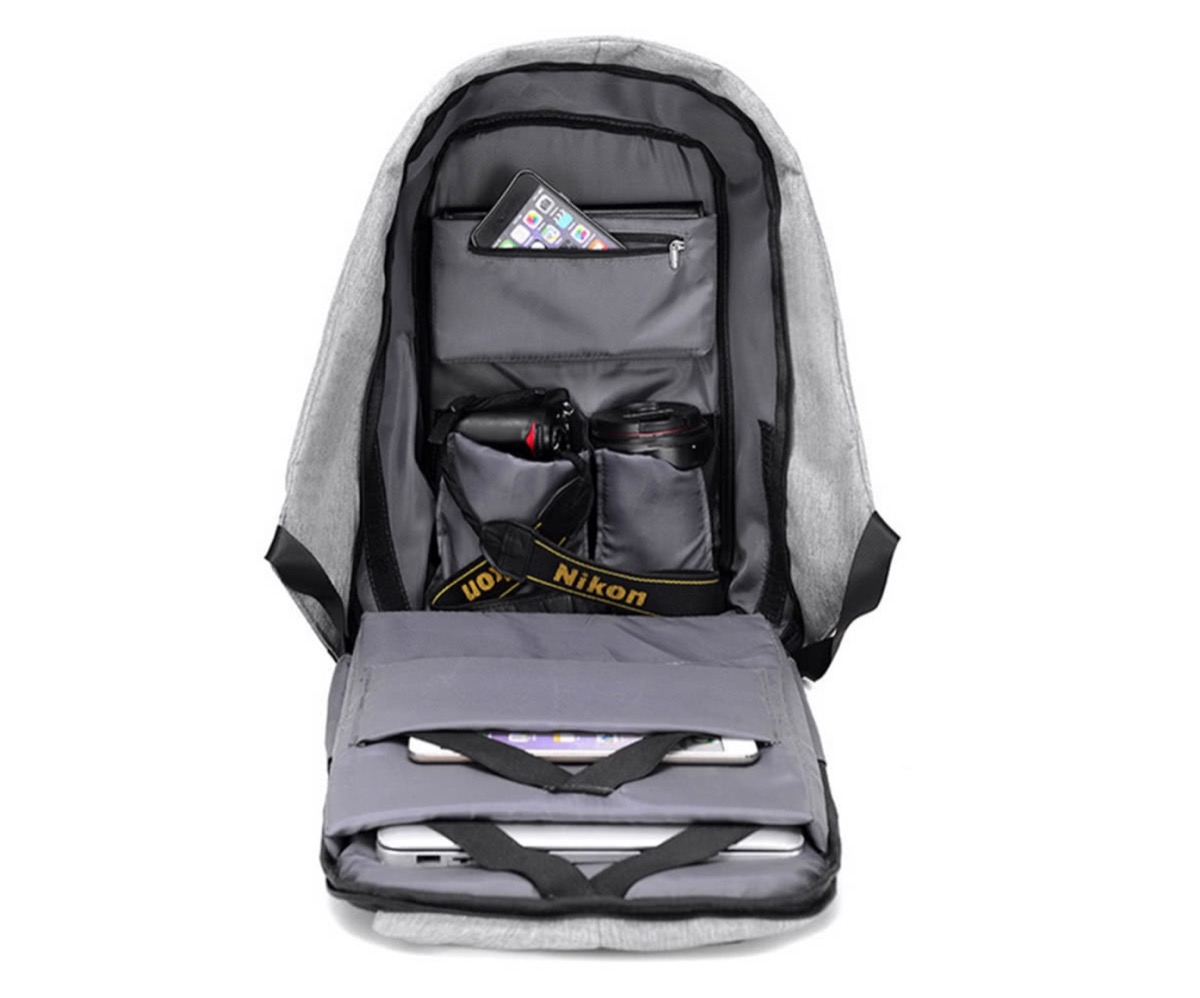 Si tratta di uno zaino realizzato in tessuto resistente e antistatico, quindi facile da pulire. Dal design moderno, la prima delle funzioni utili è una presa USB esterna collegata ad una powerbank interna molto utile per collegare un cavetto e ricaricare uno smartphone in mobilità, potendo così continuare ad utilizzarlo e ricaricandone la batteria senza rimuovere lo zaino dalle spalle.