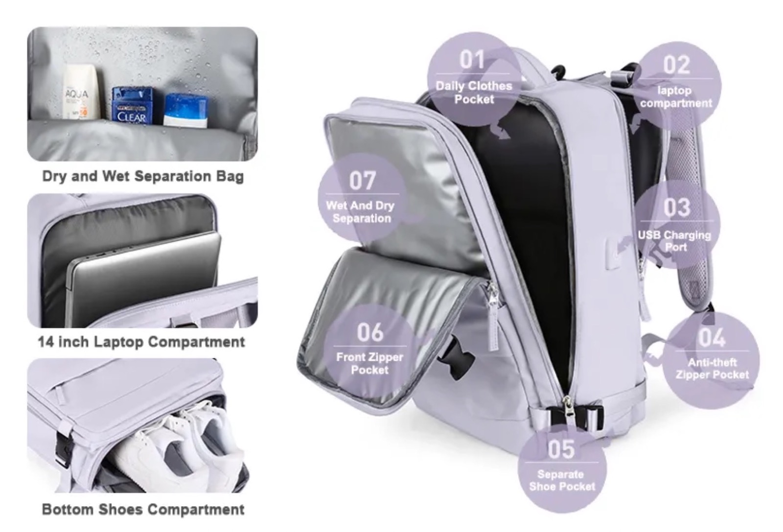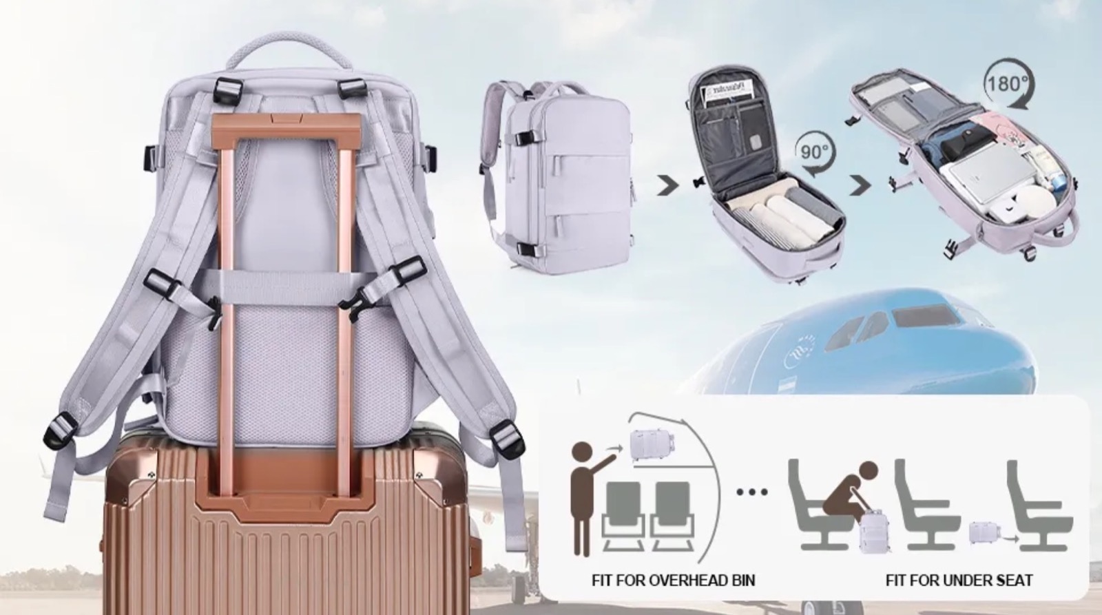 C’è un’ampia cerniera principale con design anti-scippo tramite cui è possibile accedere all’intero contenuto come se si stesse guardando dentro una valigia, e questo unito al fatto che le misure rientrano perfettamente in quelle che le compagnie di volo interpretano come bagaglio a mano fanno sì che possa essere acquistato anche in vista di un viaggio. A tal proposito, lato schiena, c’è anche una fascia che ne facilita l’aggancio al maniglione estraibile delle valigie, così è possibile trasportare entrambi con una mano sola e senza dover tenere lo zaino sempre in spalla.