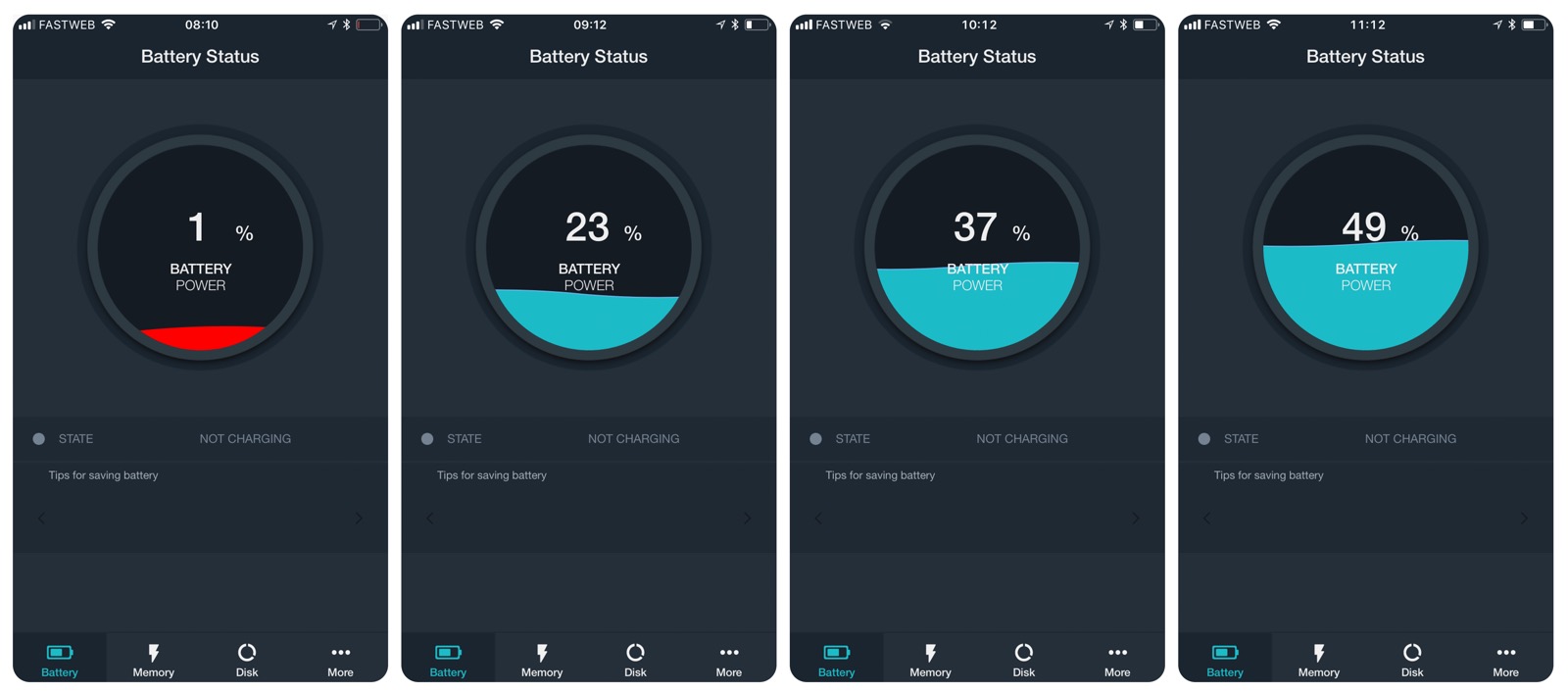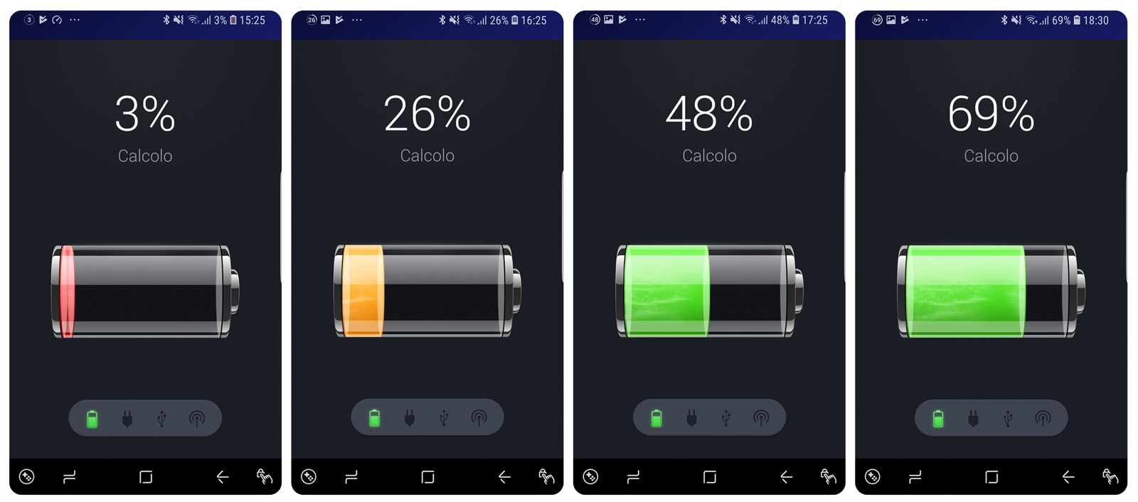 Nella prima prova abbiamo caricato entrambi i modelli di smartphone da (praticamente) zero sino ad una quantità sufficiente per capire le tempistiche: in questa prova il Samsung S9 ha letteralmente bruciato l’iPhone 8 in quanto a velocità di carica (come si vede negli screenshot qui riportati), con una carica di circa il 50 per il modello di Apple con un gap di quasi 20 punti a favore di Samsung.