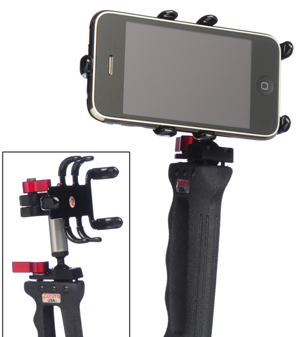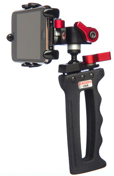 Zgrip iPhone Pro è una base di sostegno su cui si fissa iPhone 3GS inoltre offre una impugnatura solida che permette di sostenere lo smartphone, regolarne con precisione l’inclinazione e al contempo riprendere filmati con molti meno tremolii rispetto all’impugnatura tradizionale dello smartphone. La società Zacuto che lo ha realizzato è specializzata in accessori e strumentazione che a un prezzo sensibilmente più contenuto dell’attrezzatura professionale, permette ai singoli privati e case cinematografiche indipendenti di realizzare riprese e filmati per tutte quelle produzioni che non possono contare sui budget delle gradi etichette.