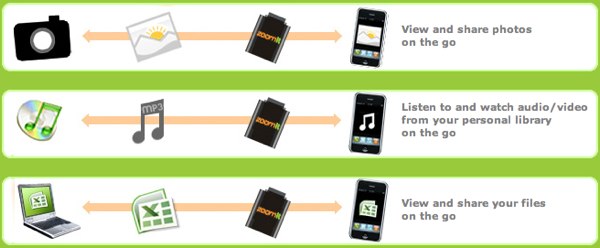 ZoomMediaPlus ci mette una pezza con l’utile zoomIt, un comodo lettore di SD card che si connette alla presa dock di iPhone e touch e che consente di leggere una SD Card inserita.