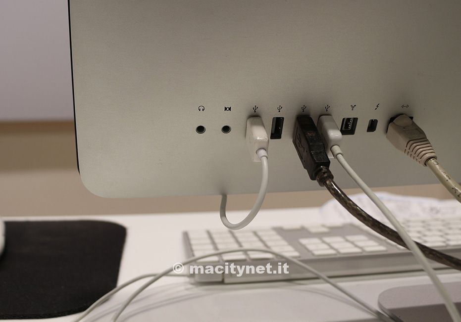 Non ci sono problemi per l’aggancio della presa USB visto che si trova nella stessa posizione degli iMac di precedente generazione.
